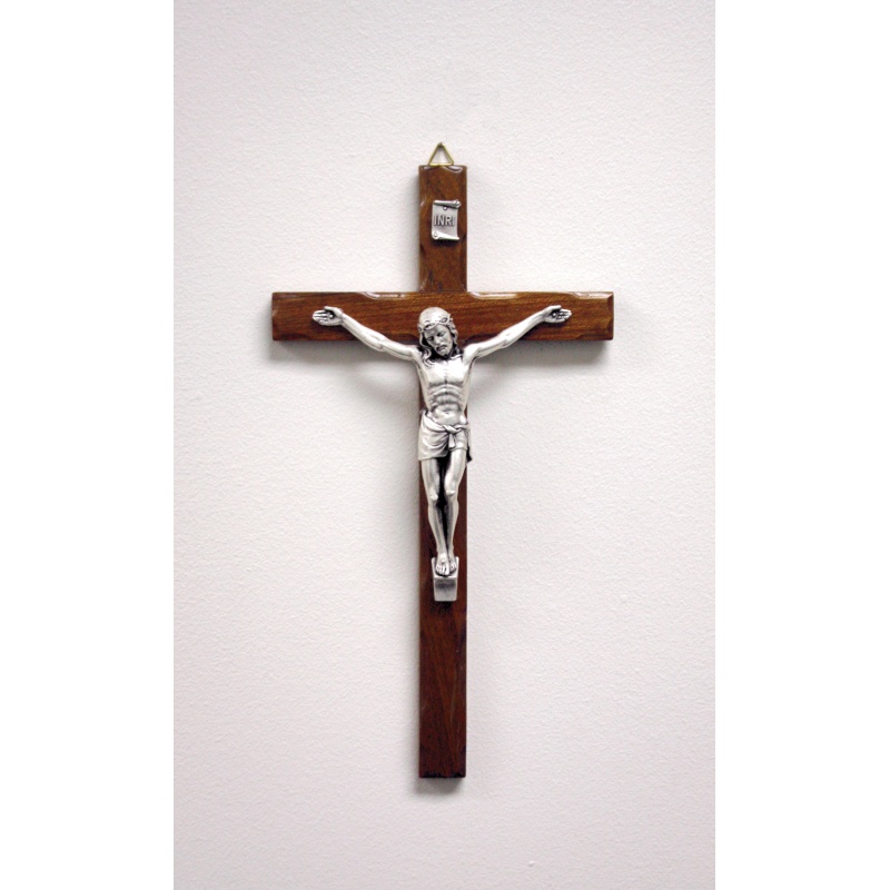 CRUCIFIX WOOD SILVER CORPUS 10"
