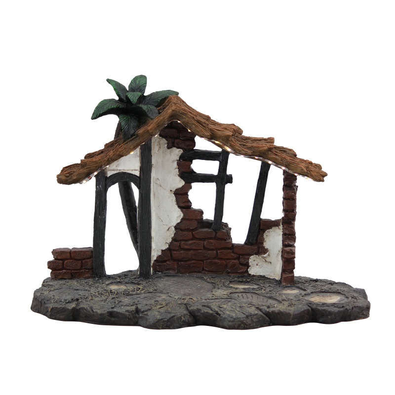 NATIVITY SET RESIN STABLE 12" WITH LIGHTS